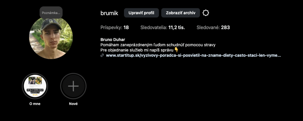 Na Instagrame som vybudoval profil (@brumik), ktorý v minulosti patril medzi najvirálnejšie v oblasti výživy v Česku a na Slovensku. Aj pri menej než 10 000 sledovateľoch som dosahoval miliónové mesačné dosahy a videá s stovkami tisíc až miliónom zhliadnutí.